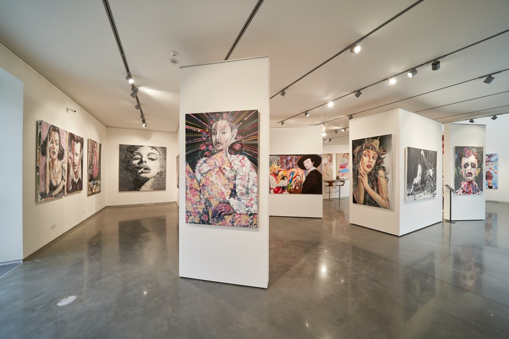 From the raw material of a canvas, colors or papers, to a singular, intelligible and intimate portrait, the artist performs a kind of transmutation… giving life to the material and to the soul. The accumulation of portraits acts like a catalyst for the visitor and produces a tremendous and liberating energy.