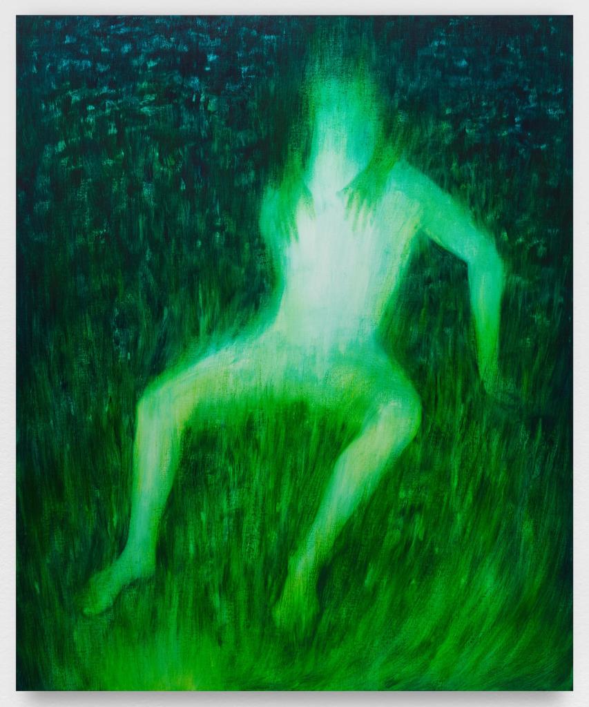 Cette sensation vaporeuse s’empare du spectateur comme une expérience de hors-corps ou de prise de conscience. L’anonymat des figures et des lieux leur procure une forme d’universalité. Les camaïeux de bleus, vert ou jaune, favorisent à la fois le sentiment de pesanteur et d’apesanteur comme un esprit vagabond qui chercherait à s’échapper… comme une étoile filante… un mouvement de l’intérieur vers l’extérieur… une force irrépressible et incendiaire.