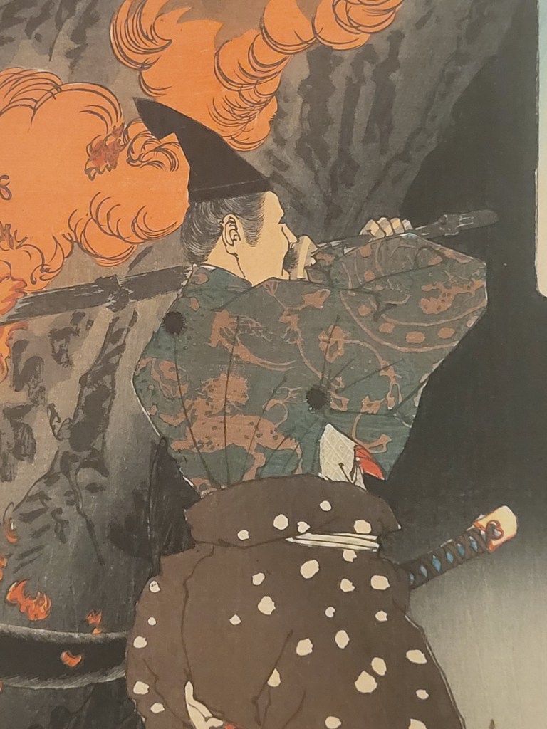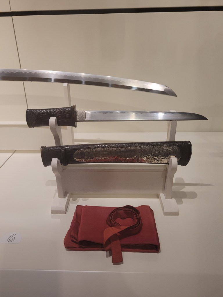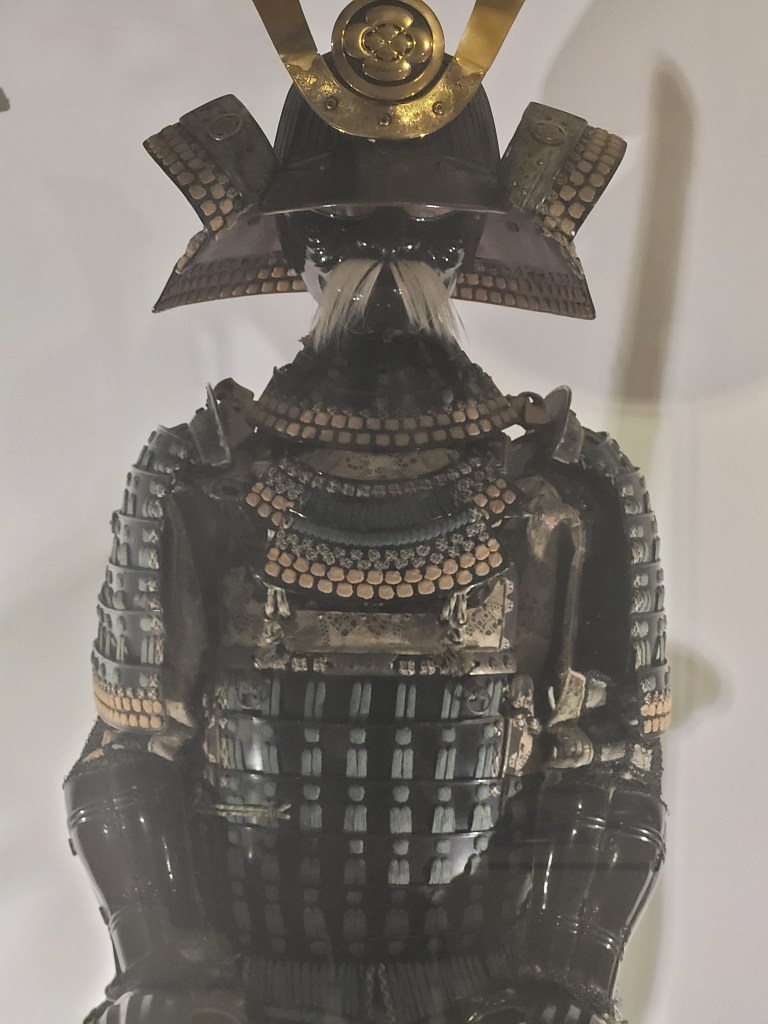 Ensuite, se concentrer sur le geste qui épouse l’encre dans l’intimité du papier… une harmonie qui se diffuse dans la poésie, les caractères calligraphiés ou les estampes. De l’art des mots à l’art de la guerre, une armure de samouraï impose par sa présence et sa sophistication… une parfaite synthèse des exigences du combat et des cérémonies… incarnation du statut social et militaire… jusqu’au bout des armes.