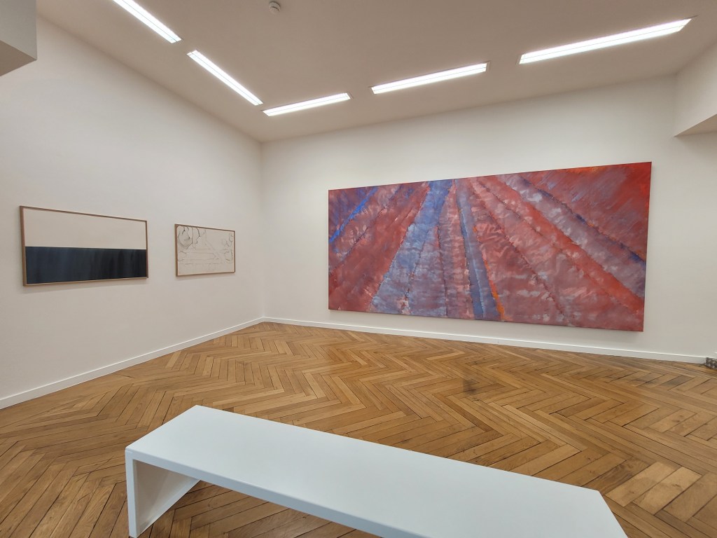 A l’étage, le geste s’accélère et fait prendre de la vitesse comme à travers la fenêtre de ce train qui met le paysage en mouvement… qui étire l’espace comme le temps qui passe. Et puis soudain il exhale le parfum des fleurs… l’éclosion d’un grand lys blanc comme d’un instant éphémère et nostalgique. Il y a aussi ce geste généreux qui prend corps dans l’épaisseur et la texture… un sillage épais qui capture l’ombre et la lumière comme une empreinte fossile. Ou encore le geste urgent qui voudrait retenir le temps et l’instant qui s’enfuit… mettre la vie sur pause et regarder infiniment. Et puis le geste charnel qui rend la toile vivante et organique… qui suggère ce qui se passe au fond du cœur comme au fond du corps… écorché vif et pourtant immortel.