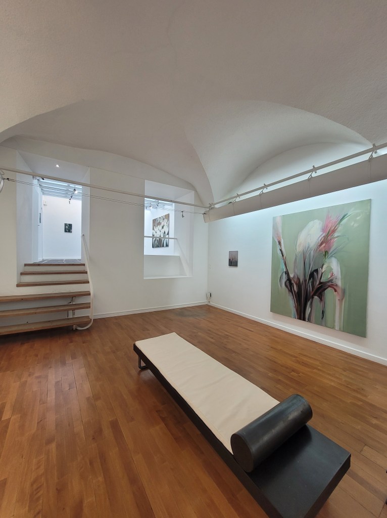 Une exposition d’automne à la teinte musicale… une couleur du temps ! La musique et les fleurs ont ce diminutif commun qu’est la composition. À la Galerie Gastaud, Milène Sanchez devient cette compositrice qui joue avec l’espace et le temps. Ses toiles y entrent en résonance avec les oeuvres de Noir Métal qui subliment l’expérience sensorielle en servant d’écrin, de support et d’interlocuteur à la peinture. La scénographie renforce l’immersion poétique, tandis que le contraste de la matière brute change la tonalité globale. Les cloisons, les chandeliers, les chevalets comme des pupitres… agissent telles les percussions dans un orchestre. C’est une étroite collaboration qui influence la coloration et la ponctuation rythmique de l’exposition. Elle devient sonore et magnétique.
